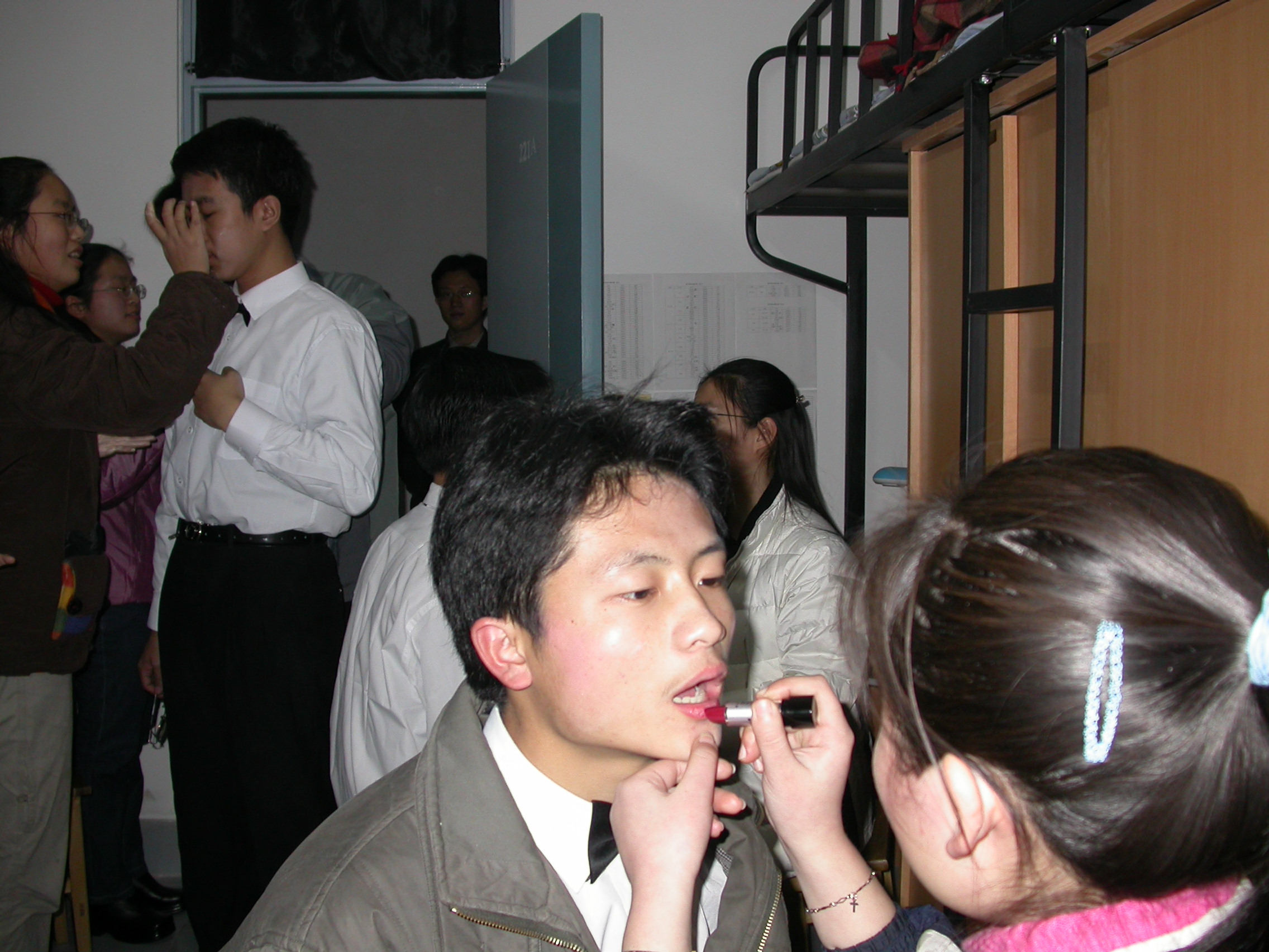 我们班的帅哥被化妆ing……