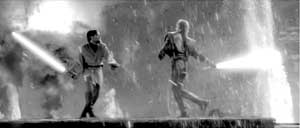 欧比王和阿纳金的“火山大战”,他们把汽油灌到日光灯管里,想要借此模拟光剑的效果