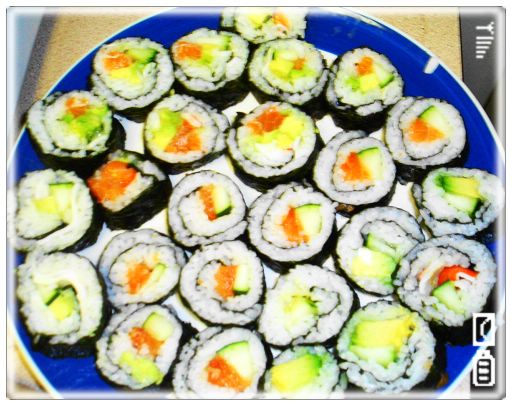 : 我让大M帮忙贴寿司的pic..